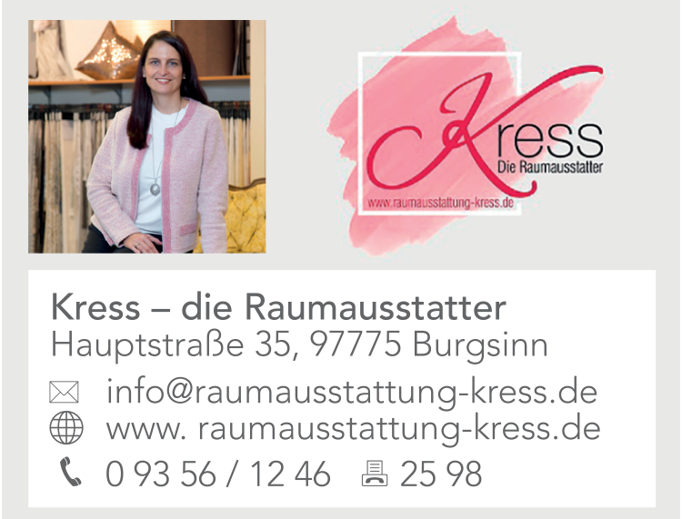 Die Adresse von Kress die Raumausstatter - Wohnraumberatung lautet: Hauptstr. 35, 97775 Burgsinn