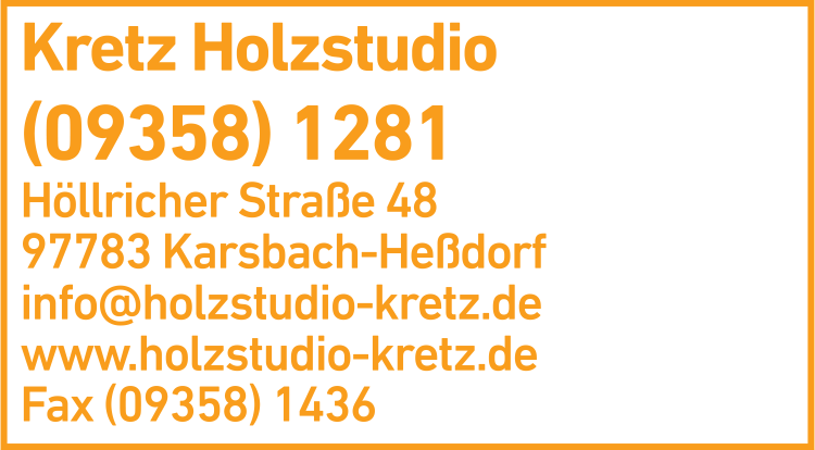 Die Adresse von Kretz Holzstudio lautet: Höllricher Str. 48, 97783 Karsbach-Heßdorf
