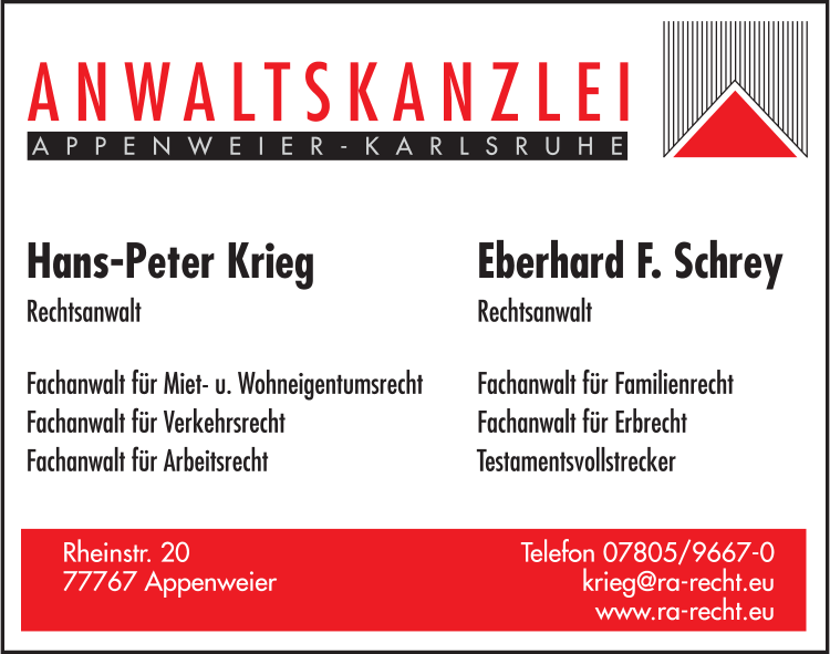Krieg & Schrey Rechtsanwälte 07805 96 67-0 Appenweier Rheinstr. 20 77767