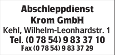 Die Adresse von Krom GmbH lautet: Wilhelm-Leonhard-Str. 1, 77694 Kehl