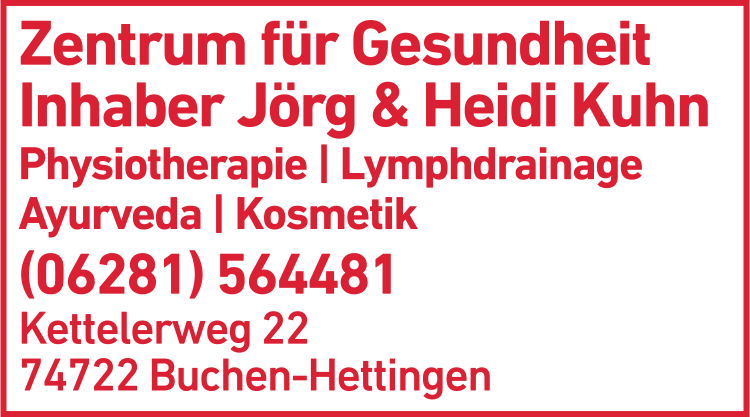 Kuhn Jörg und Heidi Praxis für Krankengymnastik & Physiotherapie 06281 56 44 81 Buchen Ketteler Weg 22 74722 Hettingen