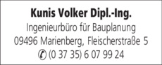 Wie lautet die Adresse von Kunis Volker Dipl.-Ing.?