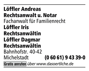 Die Adresse von Löffler Andreas Rechtsanwalt u. Notar Fachanwalt für Familienrecht lautet: Bahnhofstr. 40-42, 64720 Michelstadt
