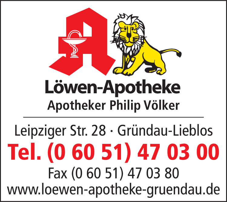 Die Adresse von Löwen-Apotheke Inh. Philip Völker lautet: Leipziger Str. 28, 63584 Gründau