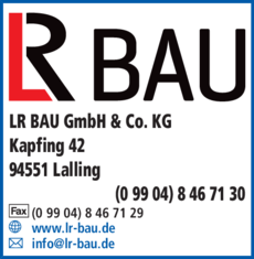 Die Adresse von LR BAU GmbH & Co. KG lautet: Kapfing 42, 94551 Lalling