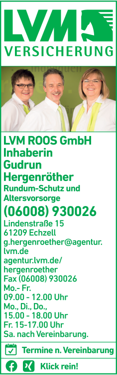 Die Adresse von LVM Versicherungsbüro ROOS GmbH lautet: Lindenstr. 15, 61209 Echzell
