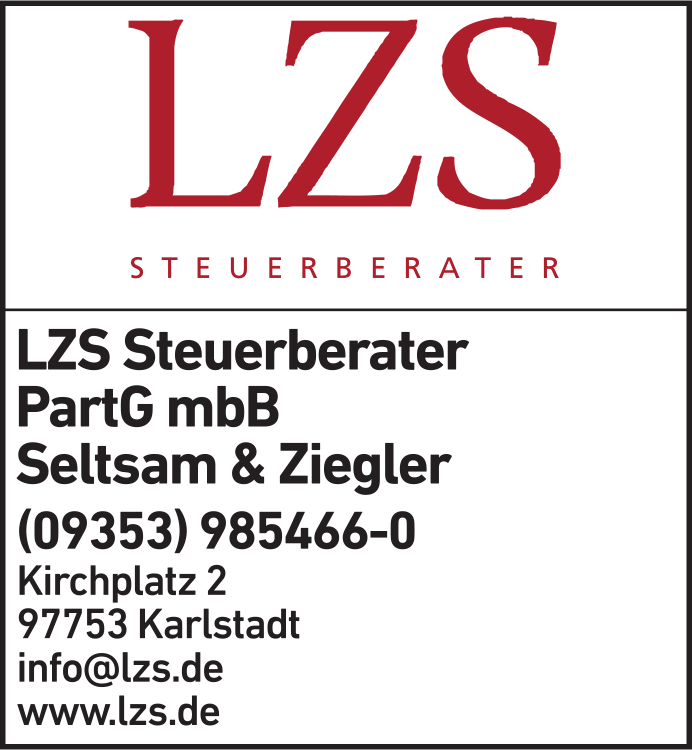 Die Adresse von LZS Steuerberater PartG mbB Seltsam & Ziegler lautet: Kirchplatz 2, 97753 Karlstadt