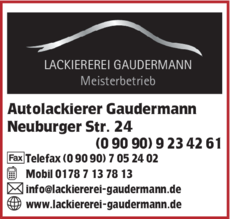 Die Adresse von Lackiererei Gaudermann lautet: Neuburger Str. 24, 86641 Rain