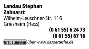 Die Adresse von Landau Stephan Zahnarzt lautet: Wilhelm-Leuschner-Str. 116, 64347 Griesheim