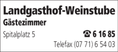 Die Adresse von Landgasthof-Weinstube lautet: Spitalplatz 5, 78199 Bräunlingen