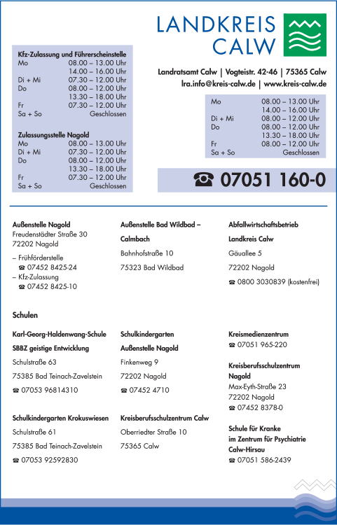Wie lautet die Adresse von Landratsamt Calw?