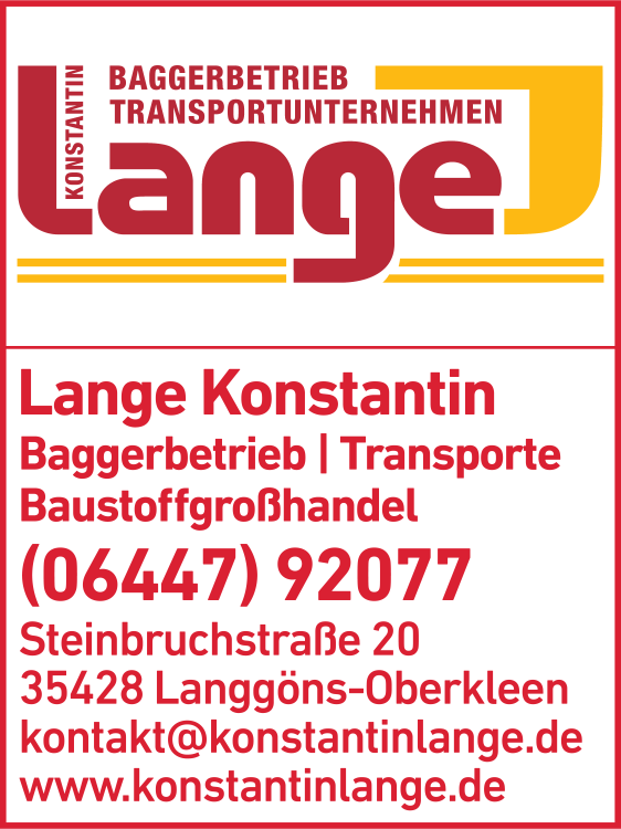 Lange Konstantin Baggerbetrieb + Transportunternehmen 06447 9 20 77 Langgöns-Oberkleen Steinbruchstr. 20 35428 Oberkleen