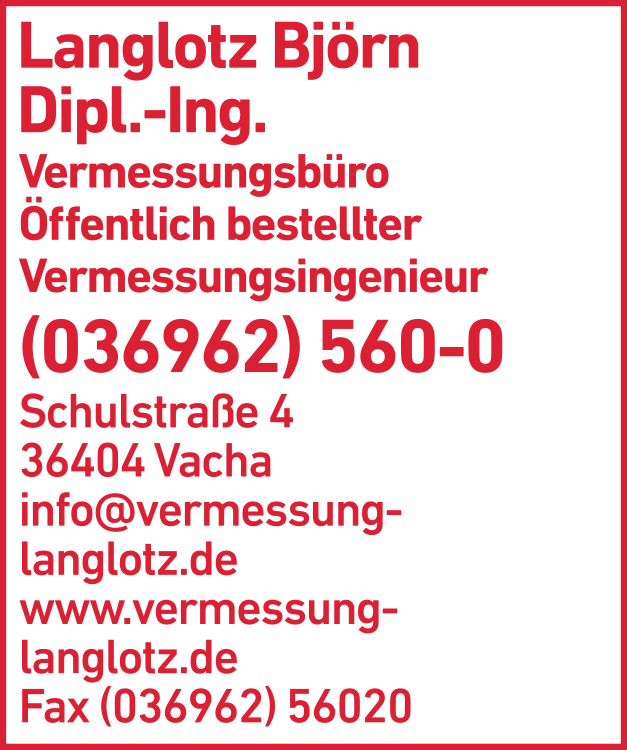 Die Adresse von Langlotz Björn Dipl. - Ing. Vermessungsbüro lautet: Schulstr. 4, 36404 Vacha