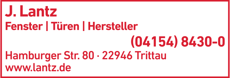 Lantz J. Fenster und Türen GmbH 04154 84 30-0 Trittau Hamburger Str. 80 22946 2 5 14