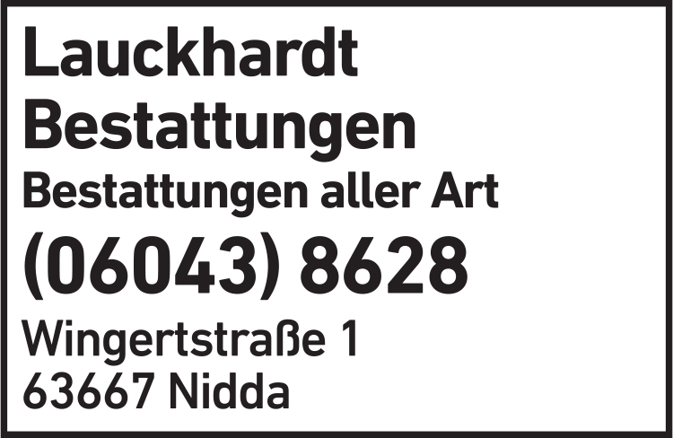 Lauckhardt Bestattungen 06043 86 28 Nidda-Geiß-Nidda Wingertstr. 1 63667