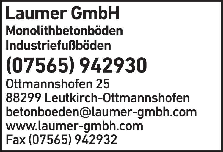 Die Adresse von Laumer GmbH lautet: Ottmannshofen 25, 88299 Leutkirch