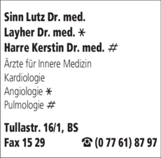Die Adresse von Layher Trudbert Dr.med. lautet: Tullastr. 16/1, 79713 Bad Säckingen