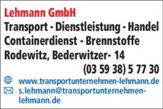 Die Adresse von Lehmann GmbH lautet: Bederwitzer Str. 14, 02681 Rodewitz