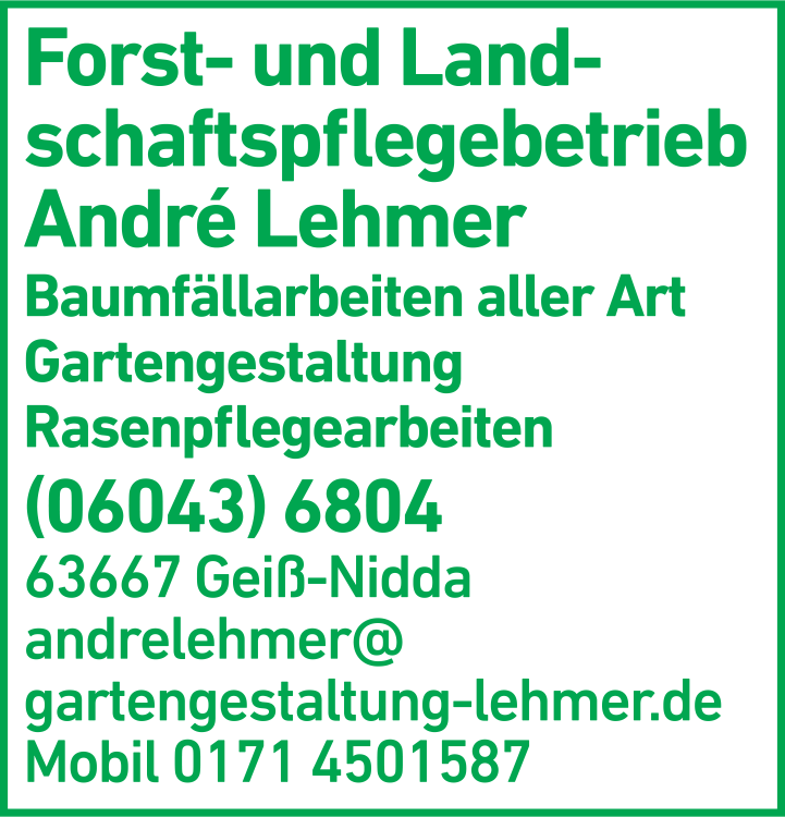Lehmer André Forst- und Landschaftspflegebetrieb 06043 68 04 Nidda Mühlgasse 1 b 63667 Geiß-Nidda