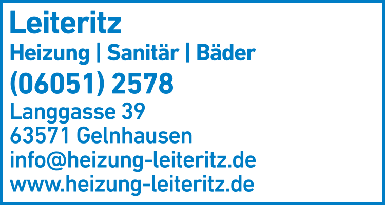 Leiteritz Heizung und Sanitär 06051 25 78 Gelnhausen Langgasse 39 63571 Hailer 3 5 2