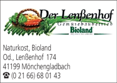 Die Adresse von Lenßenhof Kamphausen lautet: Lenßenhof 174, 41199 Mönchengladbach
