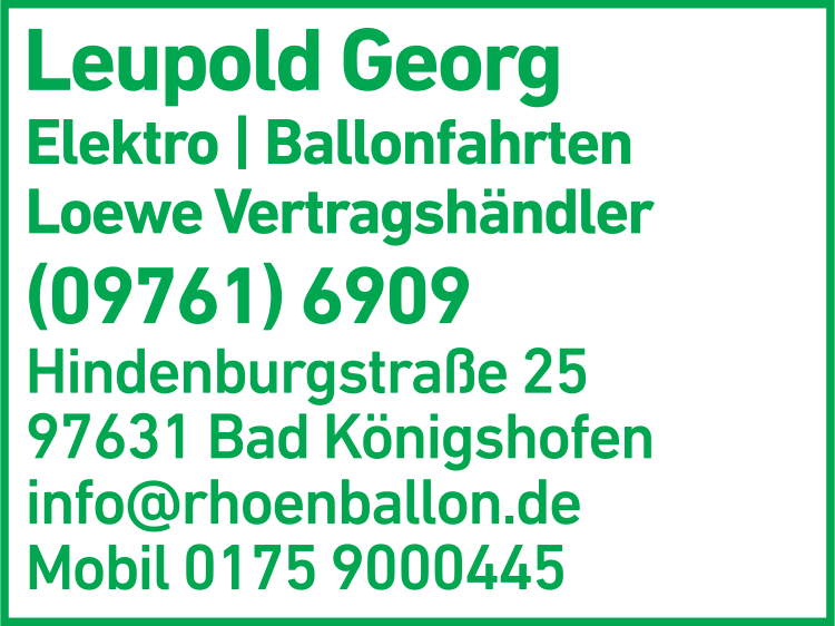 Leupold Georg Video-TV-HiFi-Modellbau Elektro 09761 69 09 Bad Königshofen Hindenburgstr. 25 97631