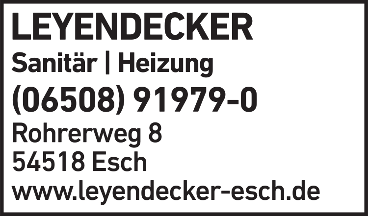 Die Adresse von Leyendecker GmbH & Co. KG lautet: Rohrerweg 8, 54518 Esch