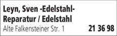 Die Adresse von Leyn, Sven -Edelstahl- lautet: Alte Falkensteiner Str. 1, 08209 Auerbach