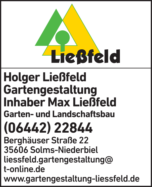 Die Adresse von Ließfeld Gartengestaltung Inh. Max Ließfeld Gartengestaltung lautet: Berghäuser Str. 22, 35606 Solms-Niederbiel