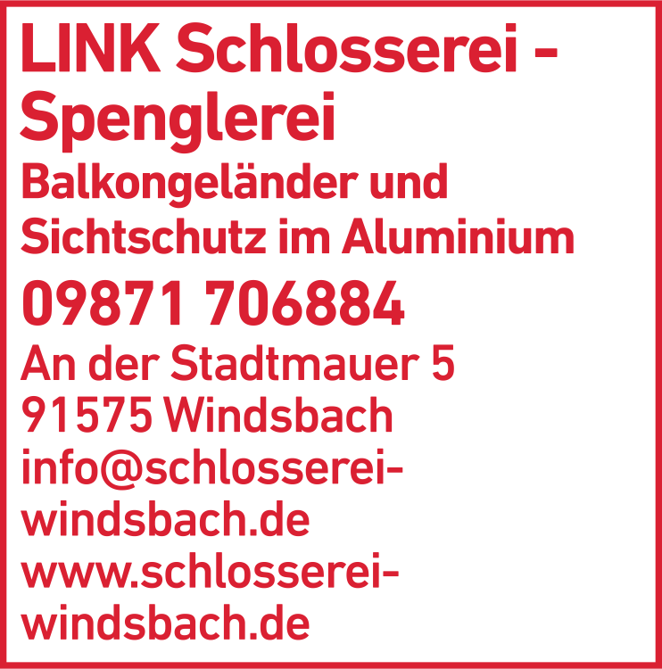 Die Adresse von Link Schlosserei-Spenglerei lautet: An der Stadtmauer 5, 91575 Windsbach