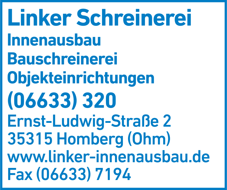 Die Adresse von Linker Schreinerei lautet: Ernst-Ludwig-Str. 2, 35315 Homberg