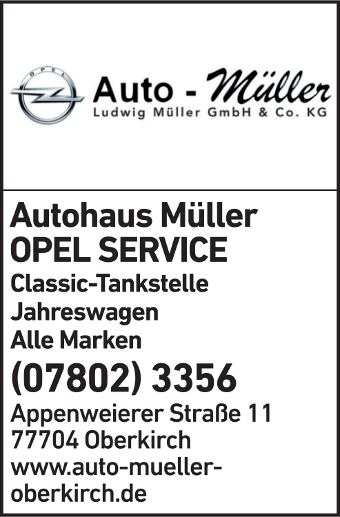 Ludwig Müller GmbH & Co. KG Opel Service 07802 33 56 Oberkirch Appenweierer Str. 11 77704