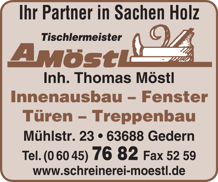 Möstl Thomas Schreinerei 06045 76 82 Gedern Mühlstr. 23 63688