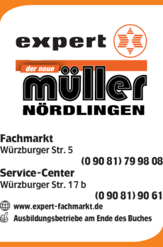 Müller Expert Fachmarkt 09081 79 98 08 Nördlingen Würzburger Str. 5 86720 https://ies.v4all.de/0122/OETB/0106/7/3407/20183407_200x100px.png 3.5 5 4