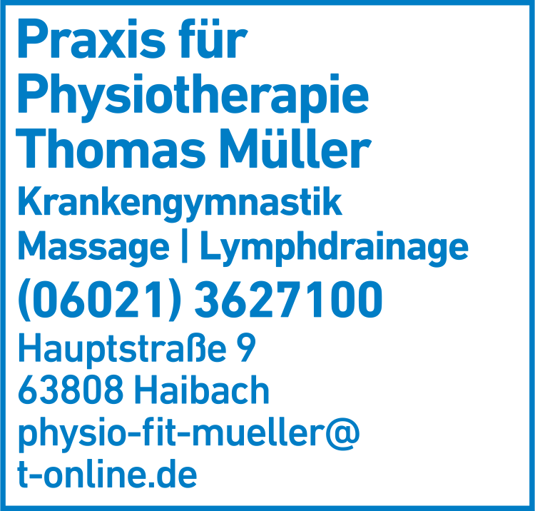 Müller Thomas Praxis für Physiotherapie 06021 3 62 71 00 Haibach Hauptstr. 9 63808