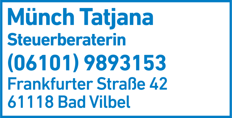 Münch Tatjana Steuerberatung 06101 9 89 31 53 Bad Vilbel Frankfurter Str. 42 61118