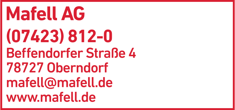 Die Adresse von MAFELL AG lautet: Beffendorfer Str. 4, 78727 Oberndorf