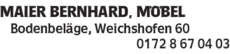 MAIER BERNHARD bietet Möbel, Bodenbeläge, Bodenleger, Design-Böden, Korkböden, Laminat-Böden, Linoleum-Böden, PVC-Böden, Parkett und Parkettbodenleger an.
