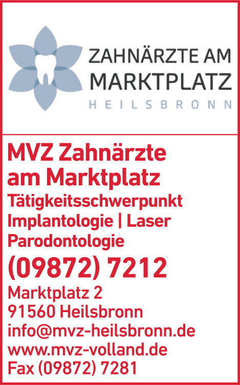 MVZ Zahnärzte am Marktplatz 09872 72 12 Heilsbronn Marktplatz 2 91560 1 5 1
