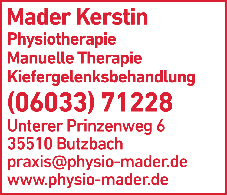 Wie lautet die Adresse von Mader Kerstin Physiotherapie?