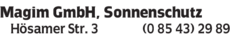 Die Adresse von Magim lautet: Hösamer Str. 3, 94501 Aldersbach
