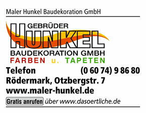 Maler Hunkel Baudekoration GmbH 06074 9 86 80 Rödermark Otzbergstr. 7 63322 Ober-Roden https://media.roeser-online.de/02/123/LOGO/000/137/934_200x100.png