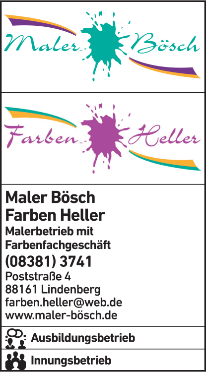 Die Adresse von Malergeschäft Bösch - Farben Heller lautet: Poststr. 4, 88161 Lindenberg i Allgäu