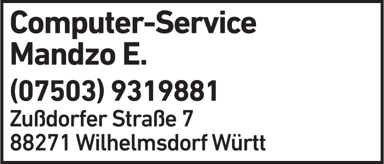 Mandzo E. Computer-Service 07503 9 31 98 81 Wilhelmsdorf Zußdorfer Str. 7 88271