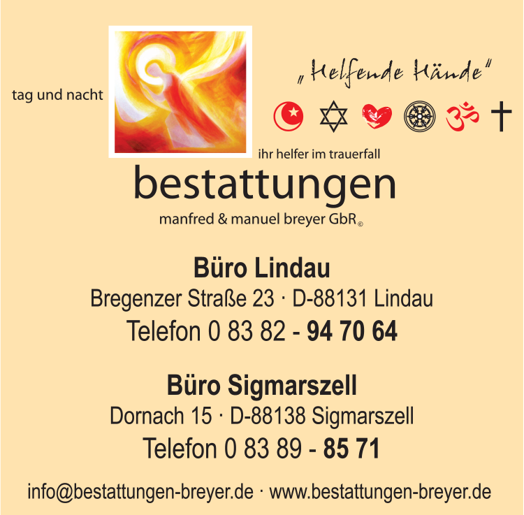 Die Adresse von Manfred & Manuel Breyer GbR Bestattungen lautet: Bregenzer Str. 23, 88131 Lindau