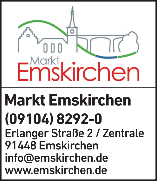 Die Adresse von Markt Emskirchen lautet: Erlanger Str. 2, 91448 Emskirchen