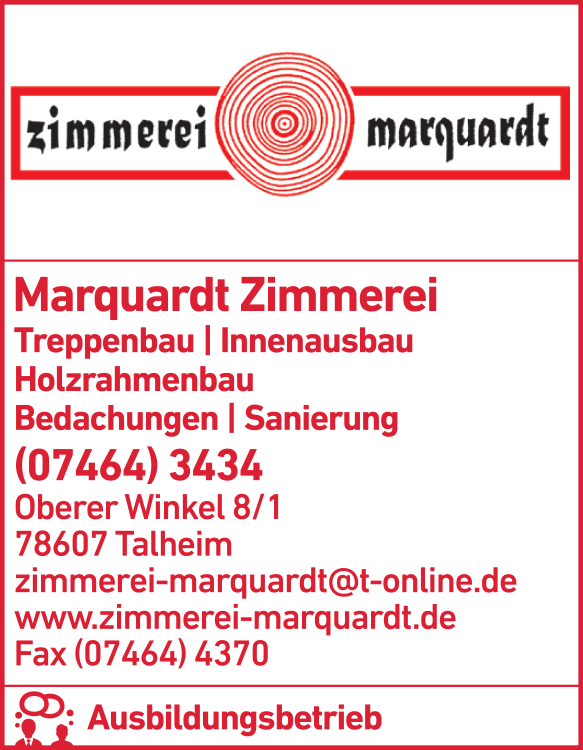 Die Adresse von Marquardt Zimmerei lautet: Oberer Winkel 8/1, 78607 Talheim