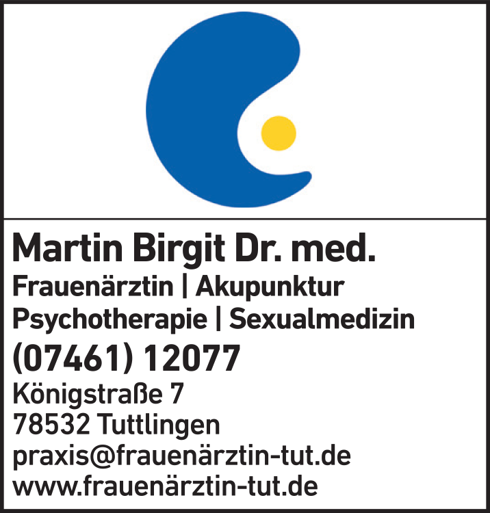 Martin Birgit Dr. med. Frauenärztin 07461 1 20 77 Tuttlingen Königstr. 7 78532