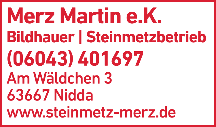 Die Adresse von Martin Merz e.K. Steinmetzberieb lautet: Am Wäldchen 3, 63667 Nidda