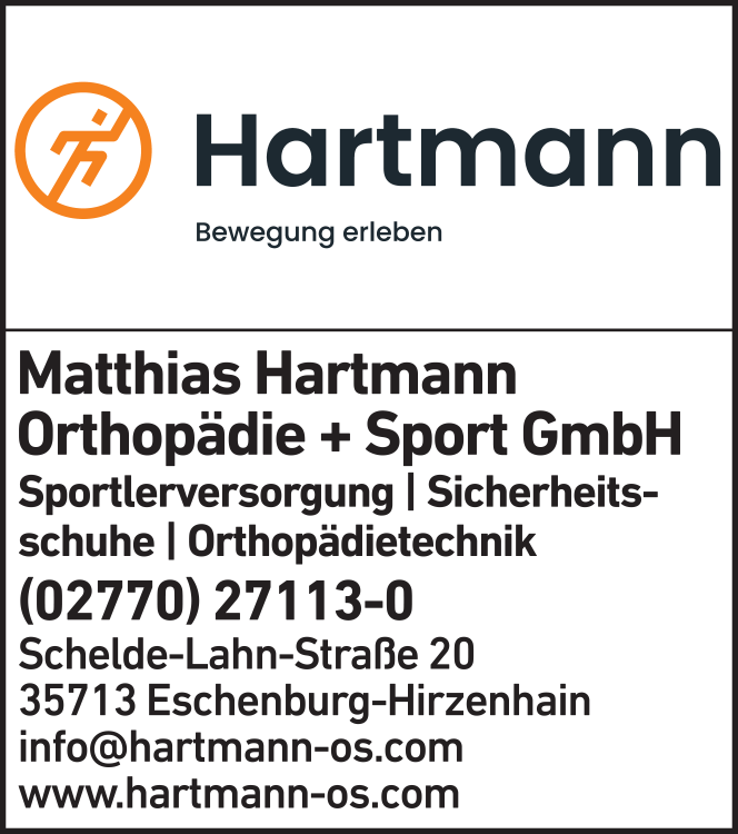 Matthias Hartmann Orthopädie und Sport GmbH 02770 2 71 13-0 Eschenburg Schelde-Lahn-Str. 20 35713 Hirzenhain-Bahnhof de.teleauskunft.oetb.webapp2.detail.Graphic@19db8fce